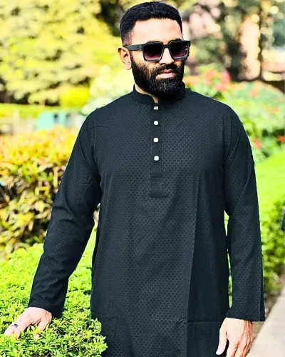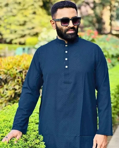 বেগুনী কালারের এই পাঞ্জাবীটি আপনার রুচি ও আভিজাত্যের এক ভিন্ন মাত্রা প্রকাশ করবে। এটি তৈরি হয়েছে ফ্লেক্সি কমফোর্ট ফেব্রিক্স কাপড়ে, যা আপনাকে দেবে অতুলনীয় আরাম এবং একটি নিখুঁত ফিট। পাঞ্জাবীর পুরো শরীরে সূক্ষ্ম কারুকার্য নিপুণভাবে ফুটিয়ে তোলা হয়েছে, যা আলোর বিভিন্ন কোণ থেকে এক মন মুগ্ধকর দ্যুতি সৃষ্টি করে। এর ব্যতিক্রমী ডিজাইন এবং আকর্ষণীয় বেগুনী রঙ যেকোনো পার্টি, উৎসব বা সামাজিক অনুষ্ঠানে আপনাকে করে তুলবে আকর্ষণের কেন্দ্রবিন্দু। বেগুনী পাঞ্জাবী আপনার পোশাকে যুক্ত করবে এক রহস্যময় ও আভিজাত্যের ছোঁয়া, যা আপনার আত্মবিশ্বাসকে আরও বাড়িয়ে তুলবে এবং ব্যক্তিত্বকে দেবে এক অবিস্মরণীয় রূপ।